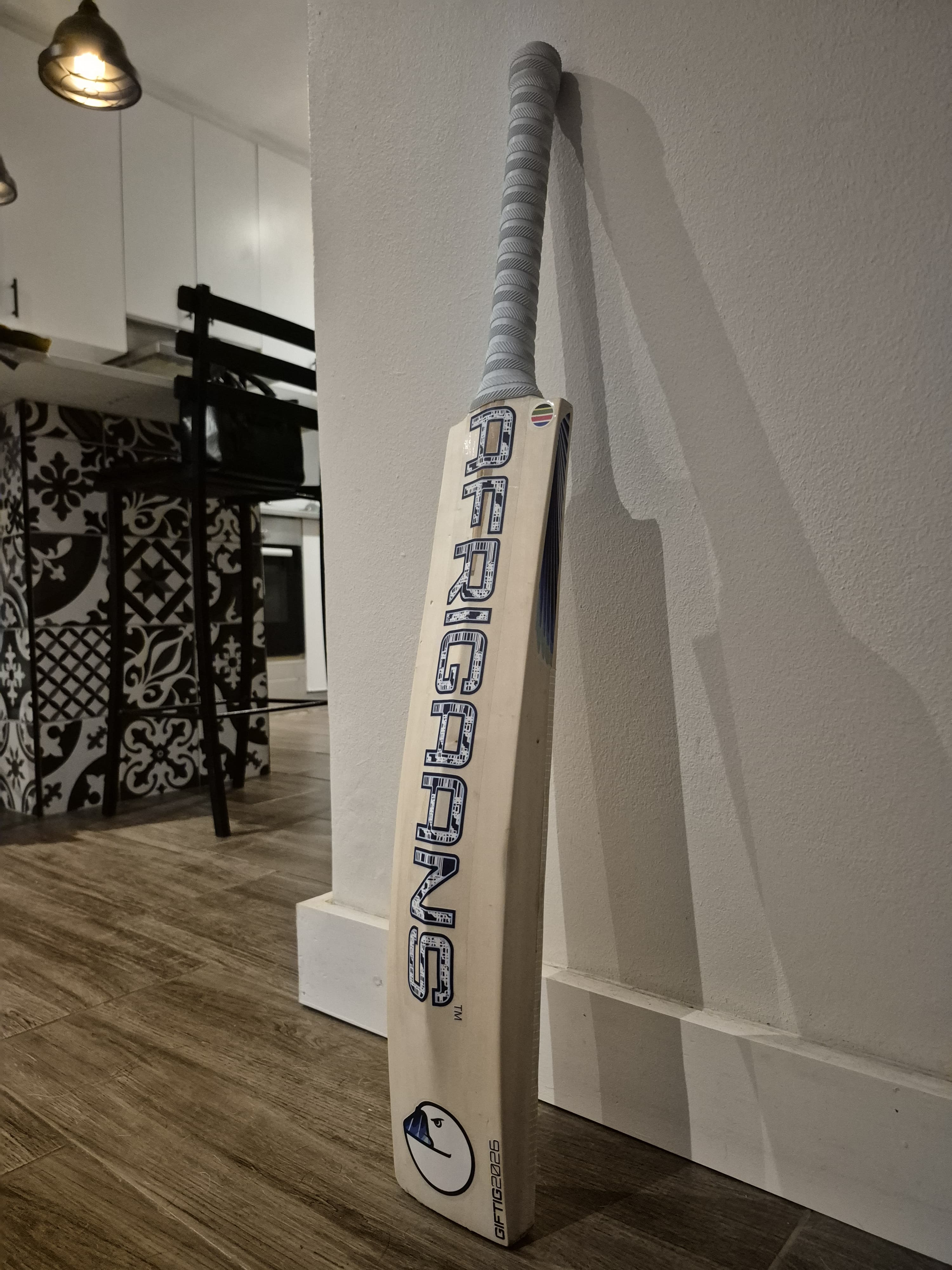 Premium English willow cricket bat designed for professional and club players. This Afrigaans bat is from the GIFTIG range. Features exceptional balance, thick edges, and a powerful sweet spot.